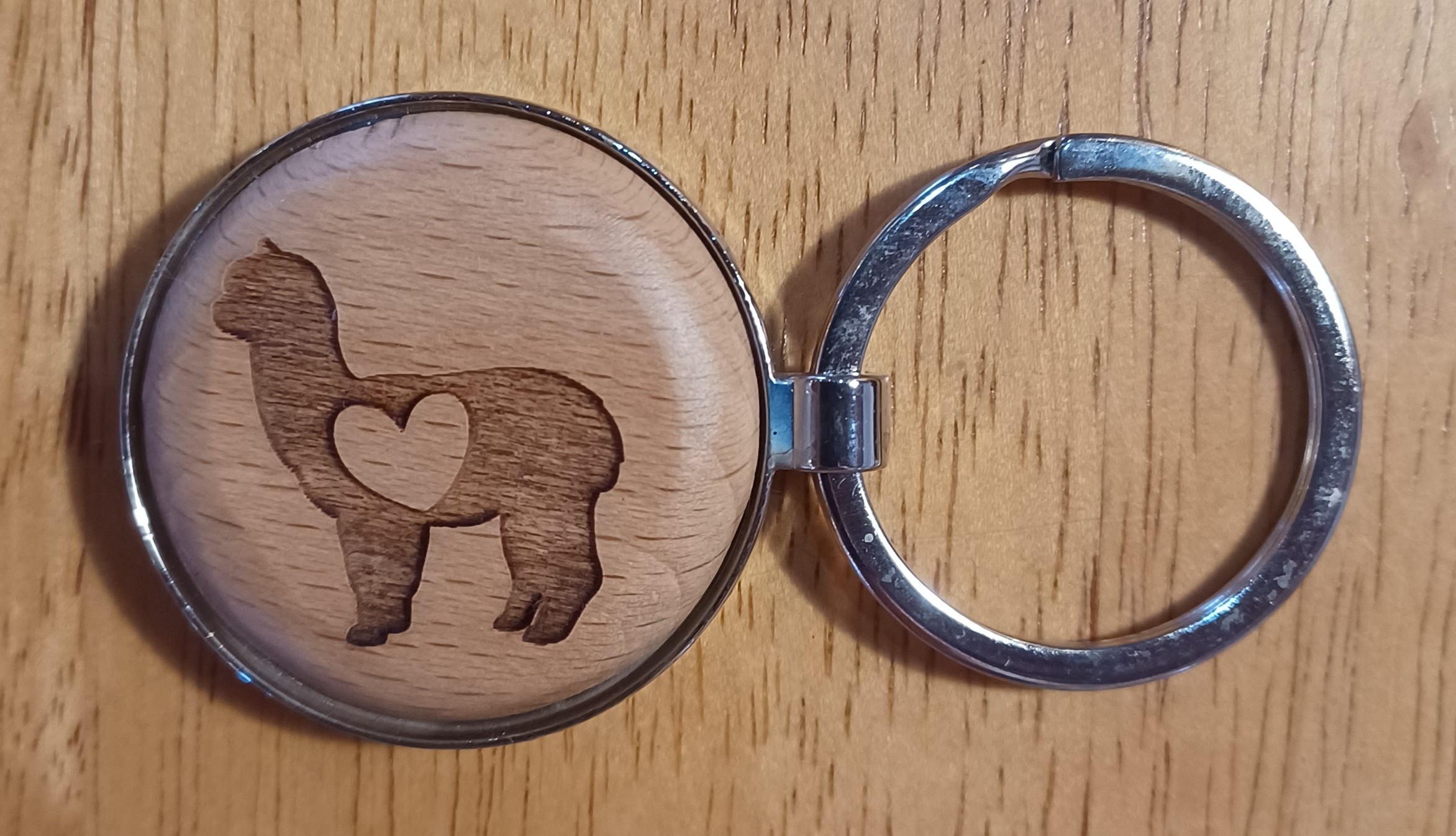 Wooden round 1 1/2″ Alpaca key chain.